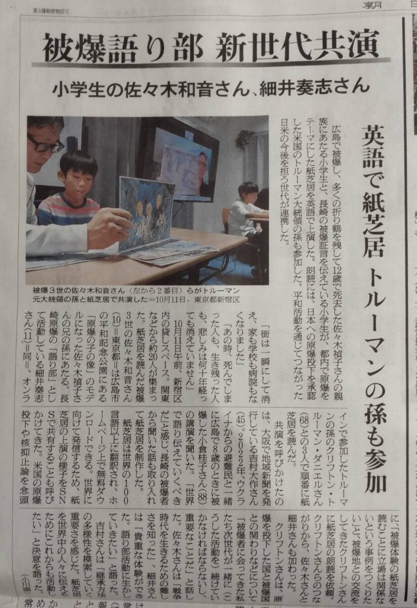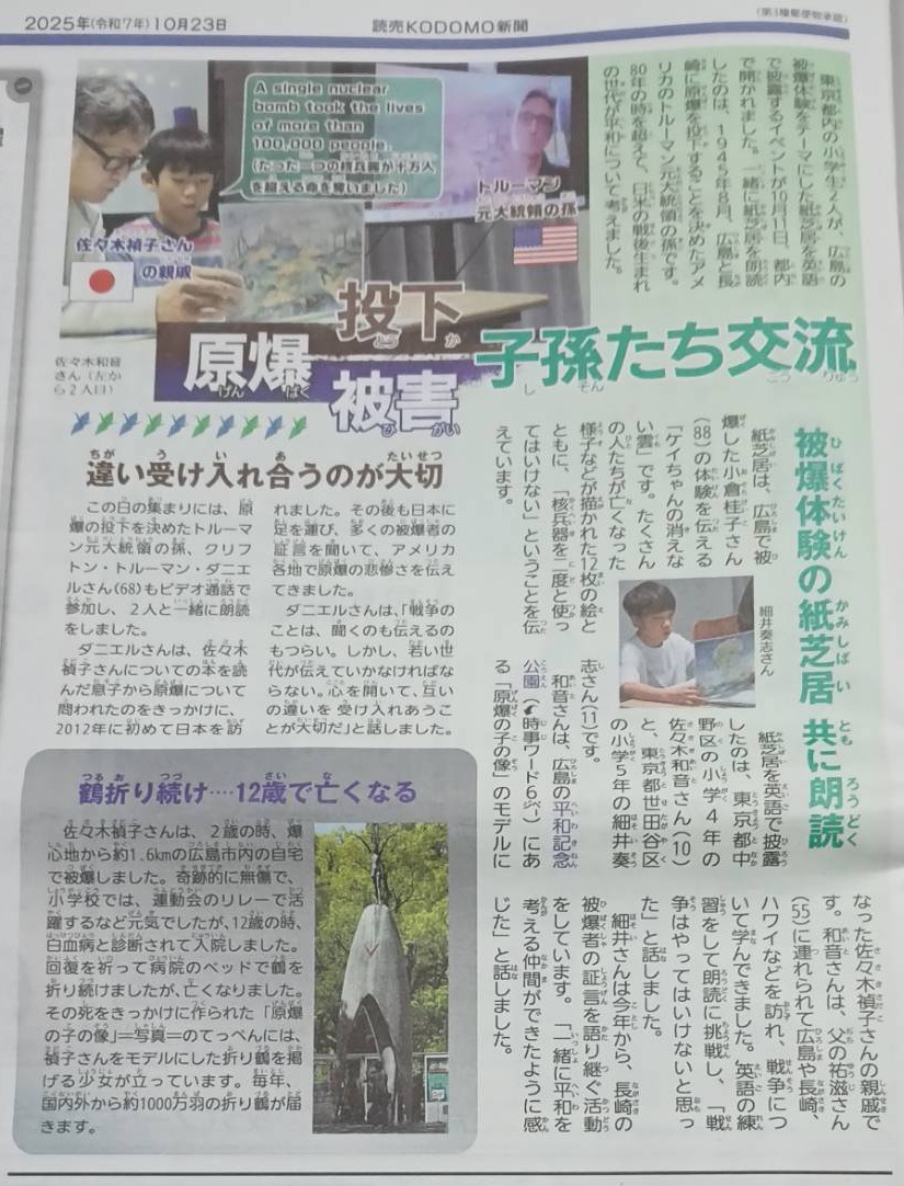 Hiroshima Storytellers Unite Across Generations and Nations 被爆語り部 新世代共演