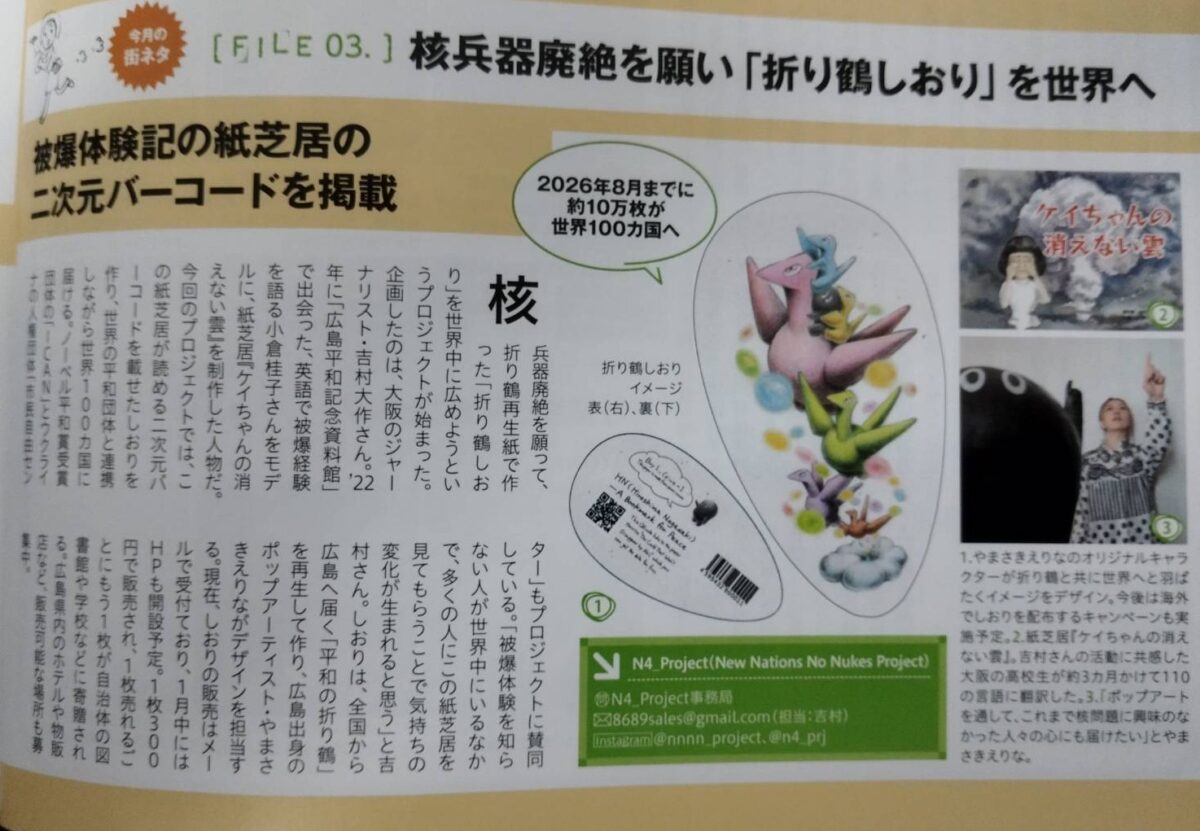 Sharing “Origami Crane Bookmarks” with the World in the Hope of Abolishing Nuclear Weapons Featuring a QR Code to a Kamishibai of Atomic Bomb Testimonies 核兵器廃絶を願い「折り鶴しおり」を世界へ 被爆体験記の紙芝居の二次元バーコードを掲載