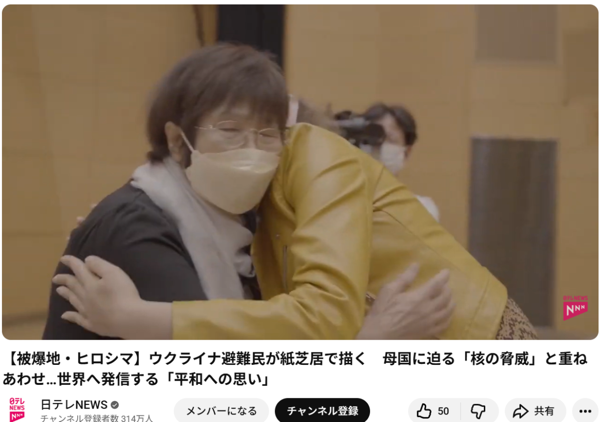 核兵器の脅威がつなげたユリヤさんと被爆地・広島。ユリヤさんは、来週の広島サミットでの議論にも期待しています。 ユリヤさん 「いま起きている戦争はウクライナの問題だけではなく、 これは世界中の問題だと思います」「(世界が)広島と長崎の経験を忘れないよう、紙芝居を心より一心に作ることにしています」 核兵器の脅威にさらされるふるさとを思い、ユリヤさんは芸術で平和を訴え続けます。