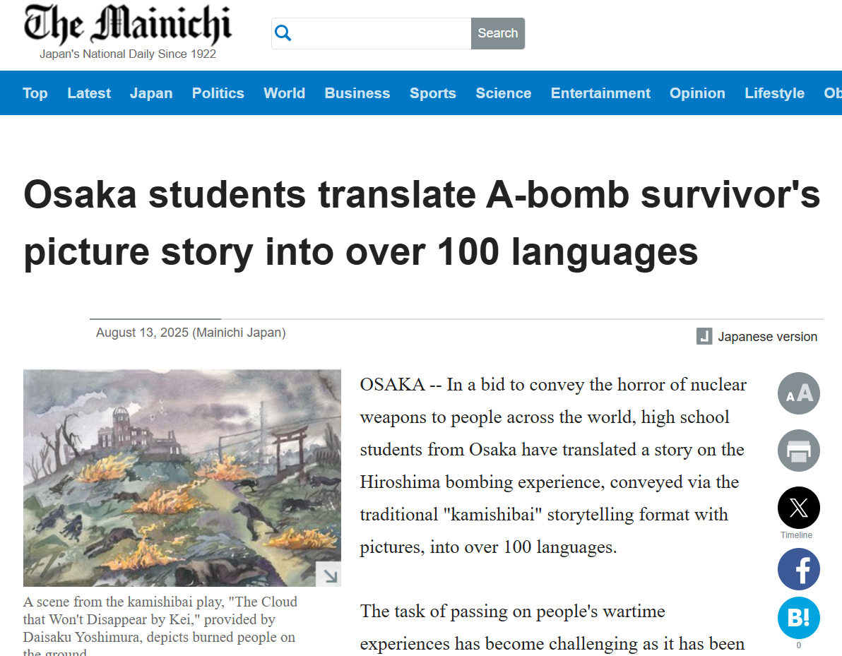 Osaka students translate A-bomb survivor’s picture story into over 100 languages