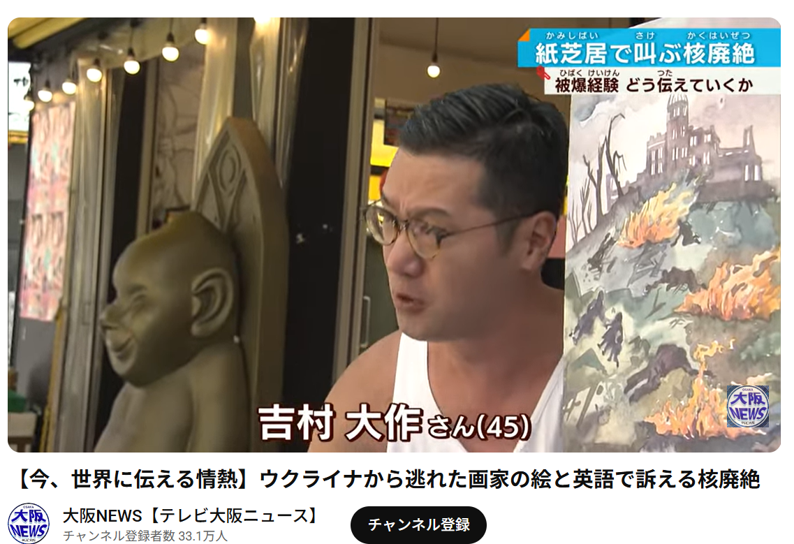 Tourists in Osaka’s Shinsekai district were captivated… by a powerful picture-story show depicting the atomic bombing experience in Hiroshima. 大阪・新世界の観光客が釘付けに…広島・被爆体験を描いた迫力紙芝居